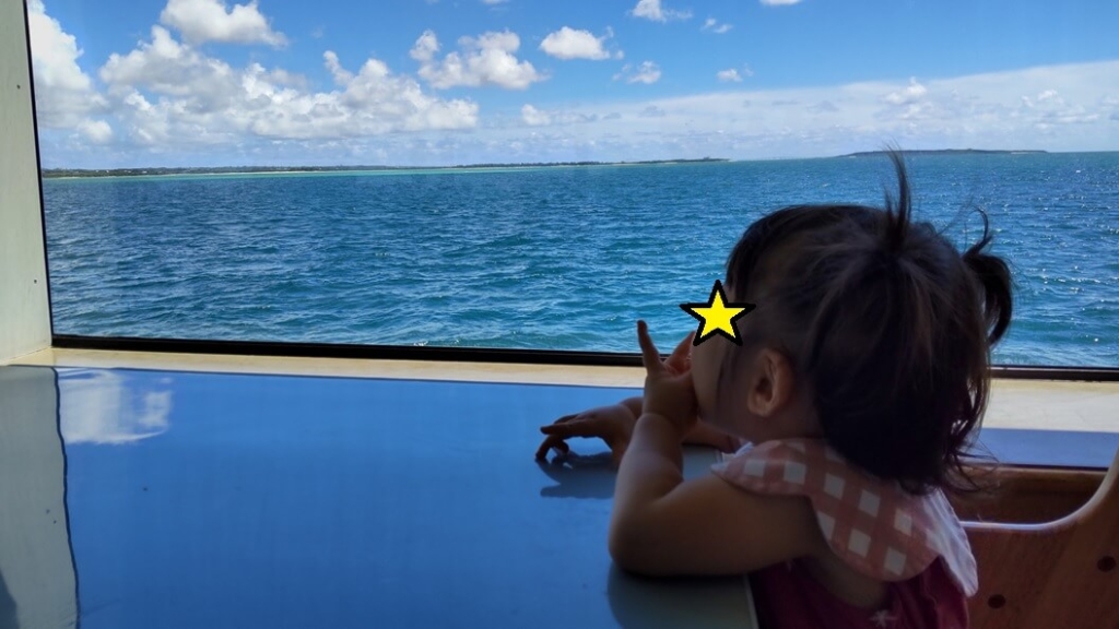 ちなみにモンブランは船の底面がガラス張りになっており、海中の魚を観たりできるのですが、娘は「地味な色の魚」が好みではなく興味なさそうでしたw(ホテル内の水槽にいる「クマノミ」みたいなカラフルな魚は大好きなのに・・・w)
